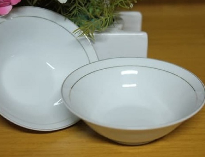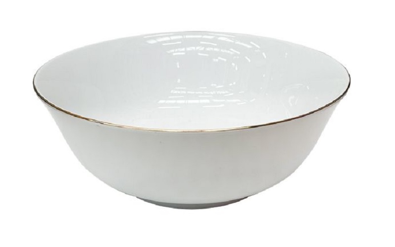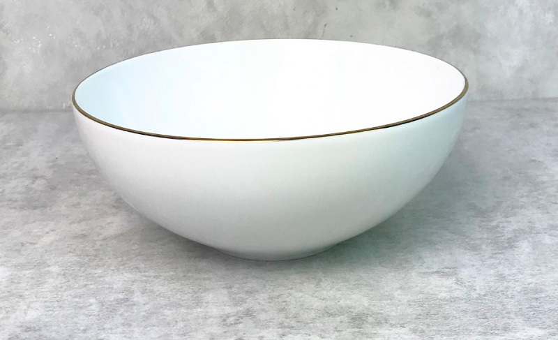 Desain mangkok lainnya yang tidak kalah menarik untuk diketahui yaitu mangkok keramik putih. Mangkok dari bahan berkualitas tersebut memiliki list emas di bagian pinggirnya.